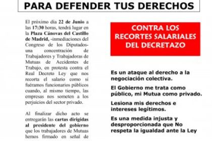 • Comfia-CC.OO. convoca a los trabajadores y trabajadoras de Mutuas a una concentracion en Madrid, el 22 de junio.