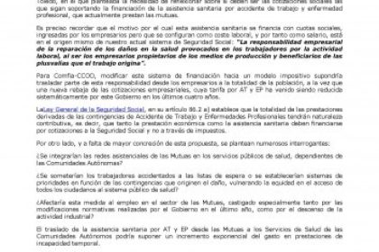 Para Comfia-CCOO, es urgente el establecimiento de un sistema homogéneo y externo de gestión de quejas y reclamaciones, con participación tripartita, y con capacidad de proponer soluciones, la aprobación de un decálogo o código ético que garantice a los profesionales sanitarios de las Mutuas que sus decisiones se basen exclusivamente en criterios técnicos y una carta de derechos y deberes de los usuarios, deben ser medidas que complementen otras reformas estructurales: