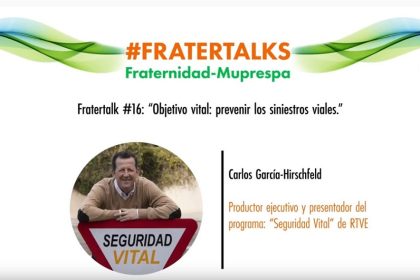 A modo de conclusión de la Semana, Fraternidad-Muprespa contó con Carlos García-Hirschfeld como invitado en el Fratertalk «Objetivo Vital: prevenir los siniestros viales». El productor ejecutivo y presentador del programa «Seguridad Vital» de Televisión Española, aportó su visión en torno a diferentes aspectos de la seguridad vial, incidiendo en la importancia de insistir, educar, divulgar y concienciar sobre el peligro de las conductas más peligrosas.