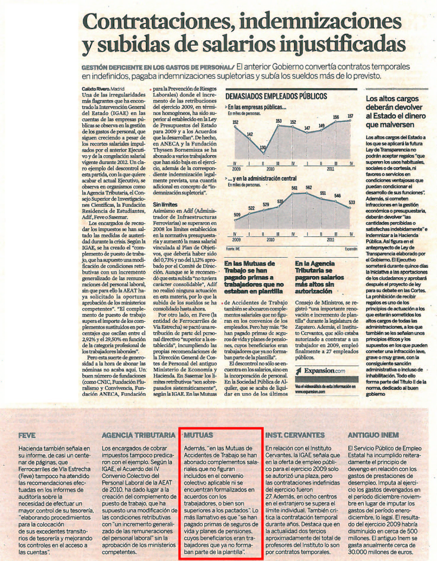Contrataciones, indemnizaciones y subidas de salarios injustificadas.