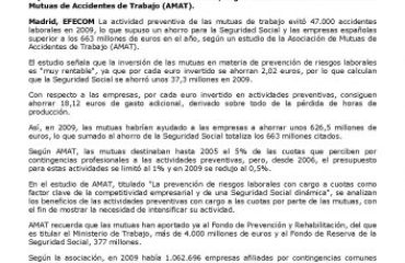 El total de días de baja derivados de estos accidentes de trabajo fueron casi 280.000, 40 días de media por siniestro, mientras que el coste estimado para la Mutua, y por tanto para la Seguridad Social, en prestaciones por incapacidad temporal por este concepto, fue de 11,2 millones de euros en 2019.