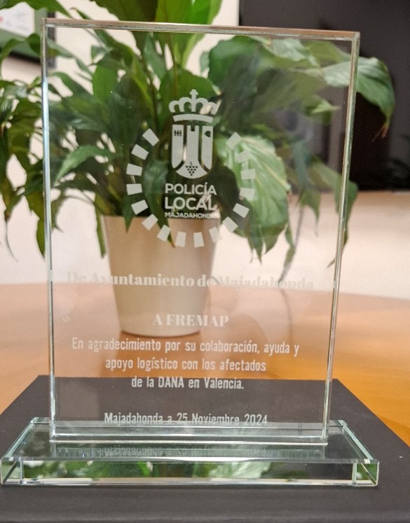 El Ayuntamiento de Majadahonda ha distinguido a FREMAP junto a otras entidades y colectivos, como Mudanzas Agustín, Mercadona, Mudanzas Los Gemelos y el Club de Fútbol Sala Rayo Majadahonda, por su destacada colaboración en la recogida de ayuda destinada a los damnificados por la reciente DANA en Valencia. Este reconocimiento se realizó en el marco del acto institucional celebrado con motivo del Día de Santa Catalina Mártir, patrona de la ciudad y de la Policía Local.