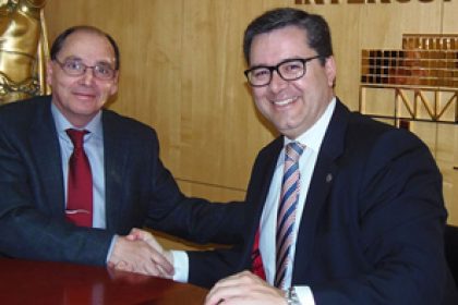 Mutua Intercomarcal y Basquet Manresa han firmado el acuerdo de renovacion del convenio que les une, por medio del director general de la mutua, Enric Gonzalez y de Josep Vives, presidente ejecutivo del club