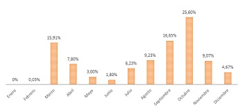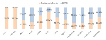 Las bajas emitidas por coronavirus sobre el total de bajas por contingencia común supusieron más del 50% durante los meses de marzo, abril, agosto, septiembre, octubre y noviembre. Esta situación, excepcional, demuestra “la repercusión de las sucesivas olas en cuanto a incapacidad temporal”, explica Javier Igea, responsable del Área de Empresa Saludable de Mutua Navarra. “Además, durante el mes de octubre se emitieron tantas bajas por la Covid como la suma de las emitidas durante los meses de marzo y abril, lo que manifiesta el gran impacto que tuvo la segunda ola con respecto a la primera”, añade.