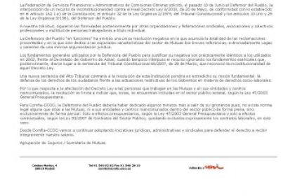 La Defensora del Pueblo “en funciones” ha emitido una única resolución negativa en la que acumula la totalidad de las reclamaciones presentadas y en la que solo dedica a las especiales características del sector de Mutuas dos breves referencias, extremadamente vagas y carentes de una mínima argumentación jurídica.