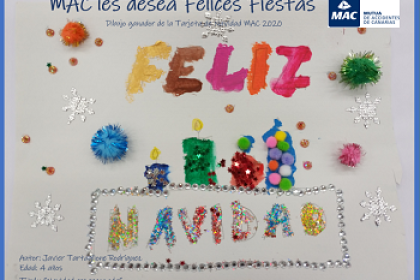 Javier Tartaglione Rodríguez, de cuatro años, fue el ganador del concurso de dibujos que auspicia nuestra mutua y que ha servido para ilustrar la tarjeta navideña de nuestra entidad. El título de su dibujo es "Navidad esperanzada”. Esta iniciativa, que se viene desarrollando desde hace muchos años, invita a participar a los hijos e hijas del personal de la mutua que tengan más de dos años y no superen los trece. En el hall de la sede central de MAC en Santa Cruz de Tenerife están expuestos los dibujos de todos los participantes.