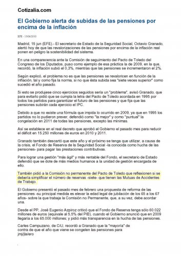 El Gobierno alerta de subidas de las pensiones por encima de la inflacion