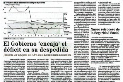 Presenta un «agujero» del 4,8% en el Estado hasta noviembre.