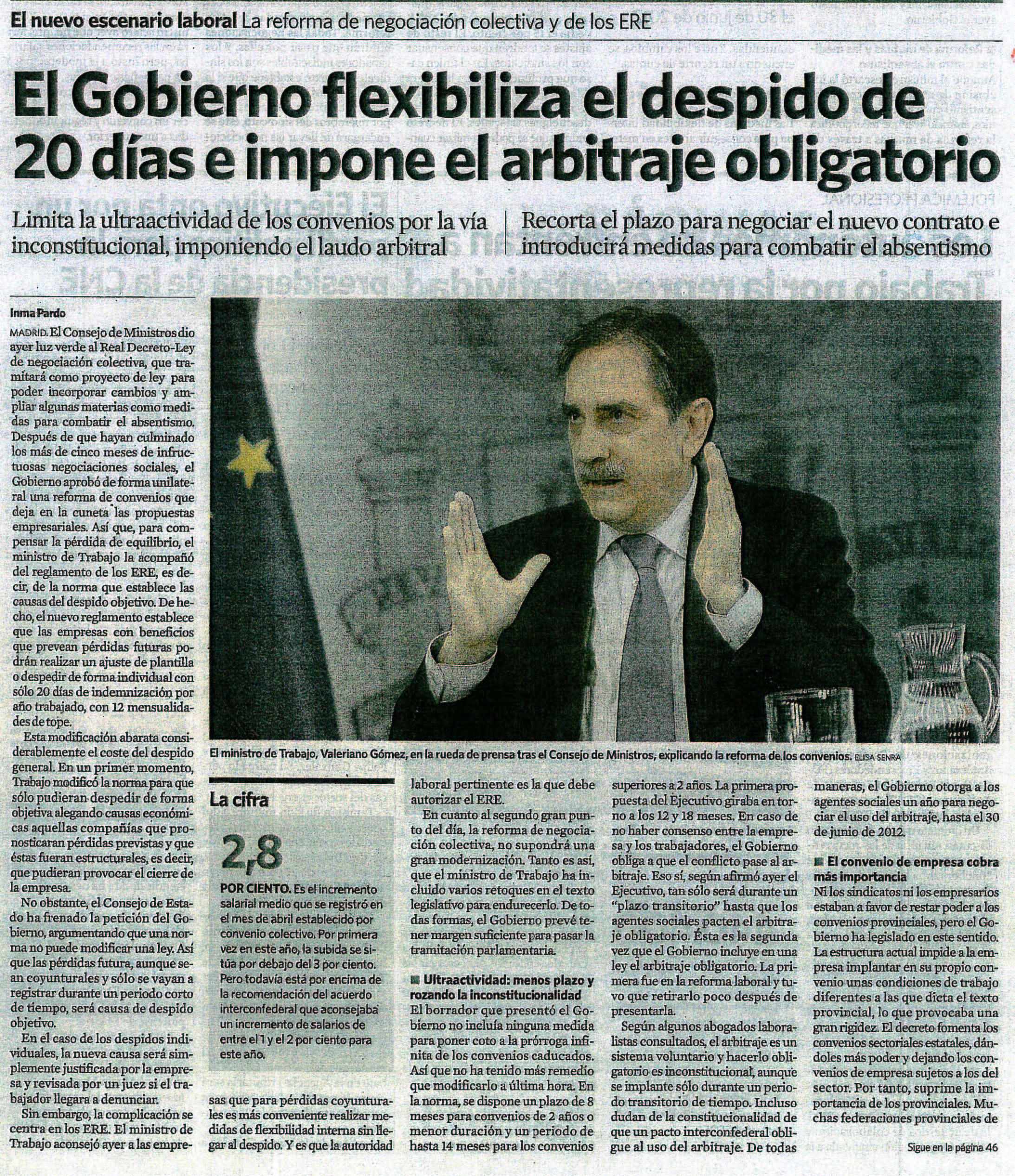 El Gobierno flexibiliza el despido de 20 dias e impone el arbitraje obligatorio.