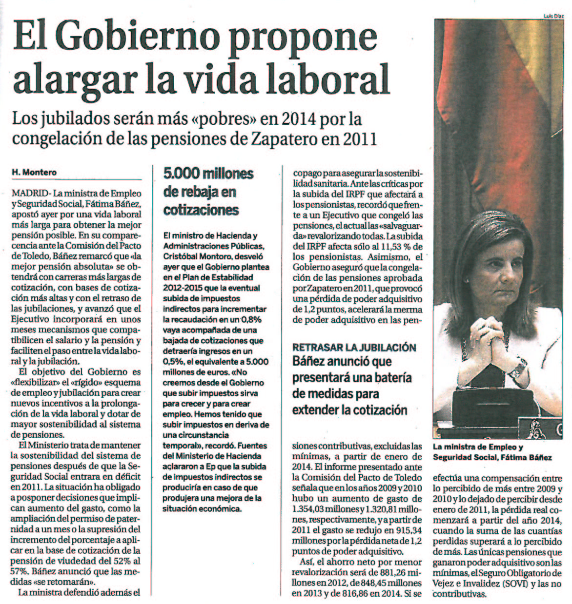 Los jubilados seran mas «pobres» en 2014 por la congelacion de las pensiones de Zapatero en 2011.