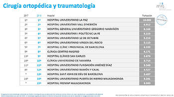 En el Ranking de Servicios Clínicos con mejor reputación por especialidad, el Hospital FREMAP Majadahonda aparece entre los 15 mejores de España en el apartado “Cirugía ortopédica y traumatología”.