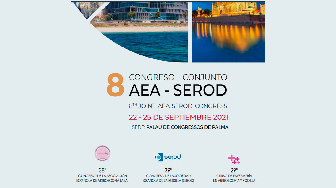 El 8º congreso conjunto de la Asociación Española de Artroscopia (AEA) y de la Sociedad Española de la Rodilla (SEROD) tendrá lugar en Palma de Mallorca, del 22-25 de este mes de septiembre.