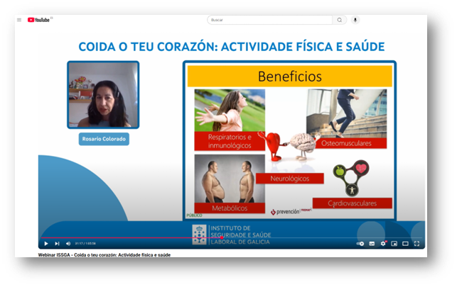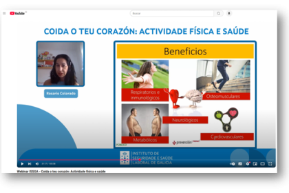 El Instituto Gallego de Seguridad y Salud Laboral (ISSGA), en colaboración con FREMAP, ha organizado el webinar “Actividad Física y Salud”, una jornada online dirigida a sensibilizar sobre la importancia del ejercicio físico como herramienta clave para mantener y mejorar la salud, especialmente en el ámbito laboral.