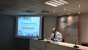 El director de Mutua Balear, Walfrid Ivern ha celebrado un desayuno empresarial en la CAEB para explicar el nuevo bonus: una oportunidad para todas la empresas de crecer en la prevencion. Se abordaran las novedades introducidas y de que manera pueden acceder, las empresas, a este tipo de incentivo.