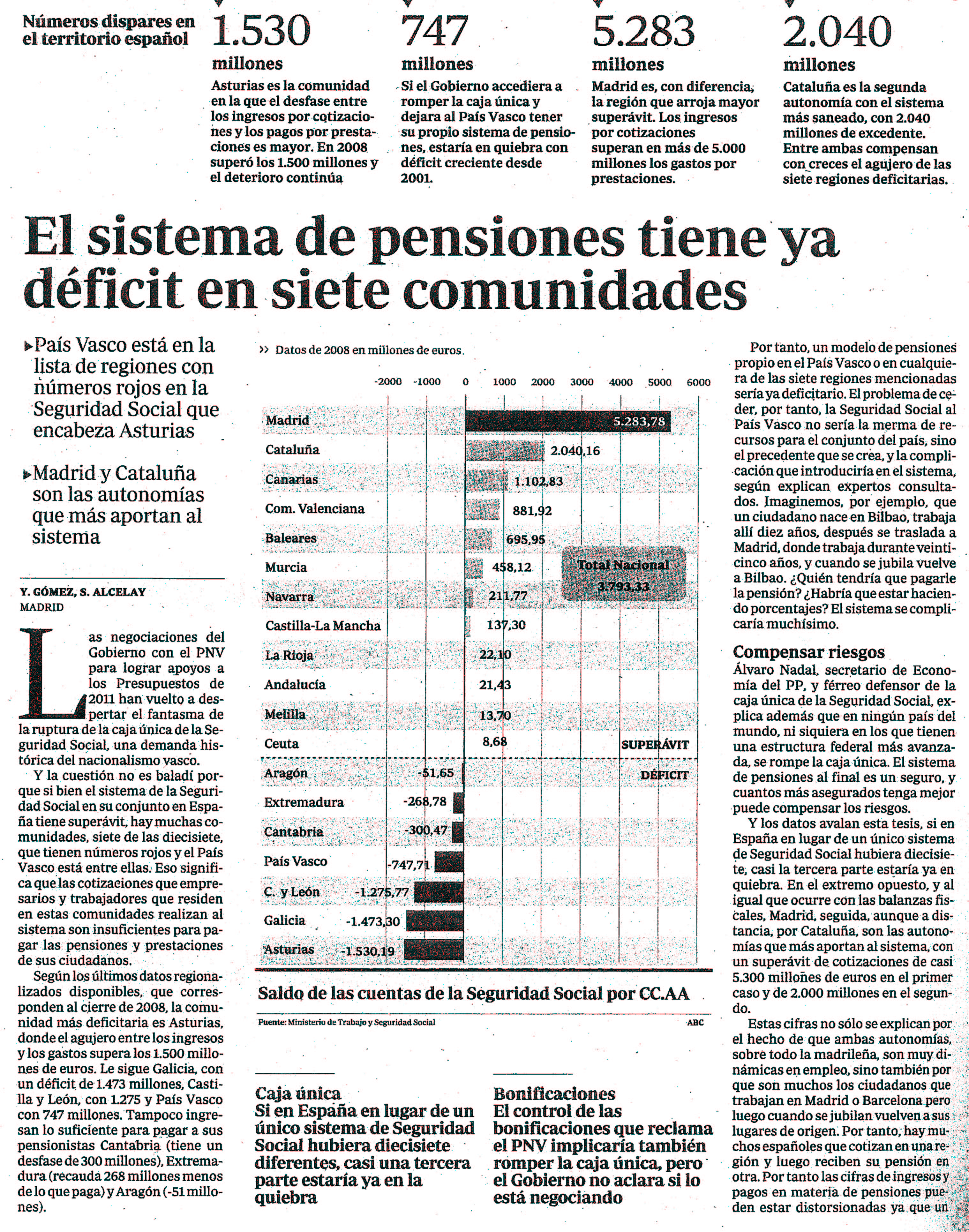 El sistema de pensiones tiene ya deficit en siete comunidades.