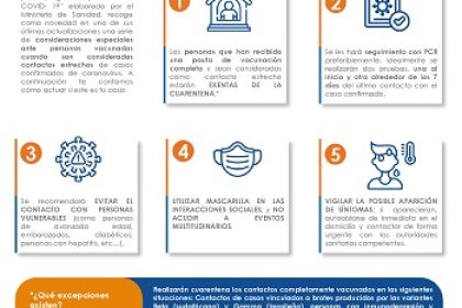 El pasado 16 de julio se actualizo el documento de Procedimiento de actuacion para los servicios de prevencion de riesgos laborales frente a la exposicion al SARS-CoV-2, elaborado por el Ministerio de Sanidad. Entre las novedades destaca la forma de proceder por lo que respecta a los contactos estrechos, especialmente en el caso de personas ya vacunadas.