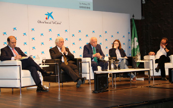 En la mesa le acompanan representantes de los agentes sociales como Ana Garcia de la Torre, secretaria de Salud Laboral y Medio Ambiente de UGT quien ha manifestado que desde UGT mantenemos que esta transformacion digital tiene que ser justa con los trabajadores ya asentados. Por parte de la CEOE Jordi Garcia Vina, director del departamento de Relaciones Laborales ha comentado no tenemos que renunciar a lo que hemos hecho bien durante estos anos respecto a salud laboral y tenemos que ver el futuro con espiritu abierto y para cerrar el turno de intervenciones Pedro Linares Rodriguez, secretario de Salud Laboral y Medio Ambiente de CC.OO. ha apostillado que el gran reto es, ser capacidad de definir las relaciones laborales en la globalizacion.
