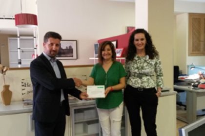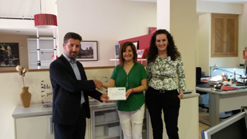 Ha recogido el diploma Carmen Munoz Tudela, tecnico de Prevencion de Riesgos Laborales de Entreblocs, entregado por el director territorial de la Zona Noreste de Fraternidad-Muprespa, Carlos Saez de Juan y de la directora provincial de la Mutua en Illes Balears, Marian Sbert Haro.