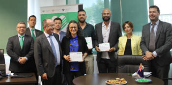 Jacobo Baro Pazos, director territorial Noroeste, Ramiro Guntin Miranda director provincial de Pontevedra y Andres Ortigueira Nunez, delegado de Vigo, han sido los encargados de repartir los diplomas acreditativos a los representantes de las siguientes empresas presentes en el acto: