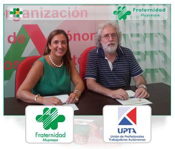 El convenio fue suscrito el pasado 17 de septiembre en las instalaciones de la Sede Social de la UPTA, por D Sonia Medrano Pascual, Directora Territorial de Andalucia Fraternidad Muprespa, y D. Jose Lorenzo Morilla, Secretario de Organizacion UPTA.