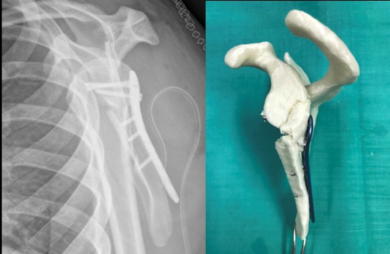 Gracias a esta técnica e inicialmente sobre la impresión de 3D a escala real, se llevó a cabo la reducción de la fractura y la fijación interna, con la misma placa con la que se realizó el tratamiento definitivo.
