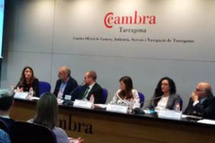 Andreu Suriol, Presidente de la Camara de Comercio, Oscar Peris, Delegado del Gobierno de la Generalitat de Catalunya, Francesc Roca, Consejero de Educacion, Ocupacion y Desarrollo Economico del Ayuntamiento de Tarragona y Teresa Colomina, Catedratica y Directora del departamento de psicologia de la URV presentaron y abrieron el Simposio.