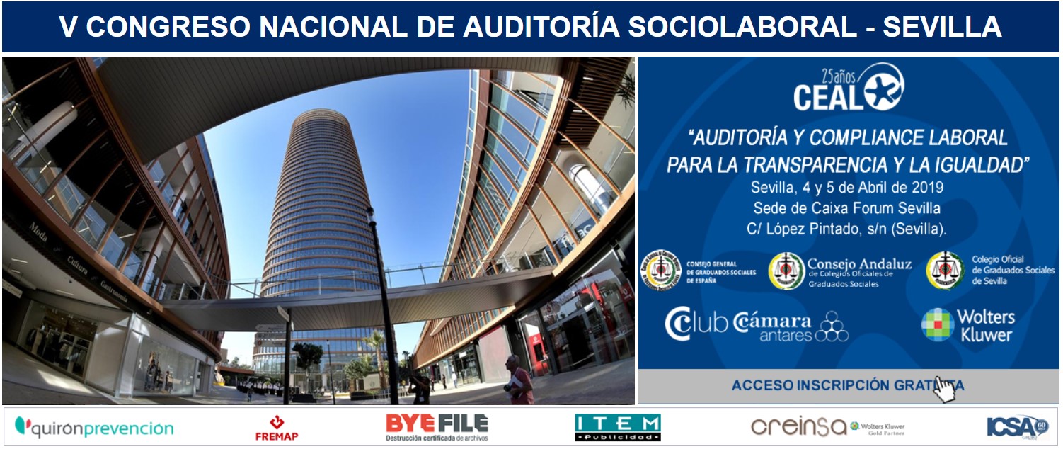 El V Congreso Nacional de Auditoría Socio-Laboral se celebra bajo el lema “Auditoría y Compliance Laboral para la Transparencia e Igualdad” y está organizado por la Asociación Española de Auditores Sociolaborales (CEAL)