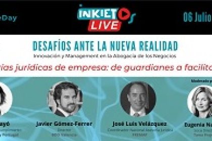 La asociacion Inkietos, principal think tank de la abogacia de negocios en Espana, organizo el pasado 6 de julio la segunda edicion del Inkietos Live Day, un evento digital de un dia de duracion, de acceso gratuito y solidario, donde una veintena de reconocidos expertos relacionados con la innovacion y el management en la abogacia de los negocios reflexionaron sobre los desafios ante la nueva realidad para los despachos de abogados y las asesorias juridicas de empresa.