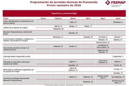 La información completa para la inscripción a cada una de las actividades, se publicará quince días antes de su celebración en la Agenda del Canal de Prevención y se remitirá también por correo electrónico a los suscriptores del Servicio de Información de Prevención de FREMAP-si aún no se ha suscrito, puede hacerlo a través del enlace que encontrará al efecto en el Servicio de Información-.