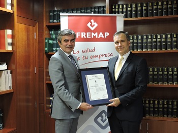 El Acto de entrega del certificado AENOR de Seguridad de la Información se ha desarrollado este martes en las oficinas centrales de FREMAP en Majadahonda. El Director General de AENOR, Rafael García Meiro, ha hecho entrega a Josu Esarte Sola, Director Gerente de FREMAP, de la certificación.