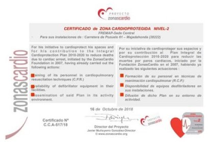 FREMAP recibe para su sede social el certificado de Zona Cadrdioprotegida Nivel 2