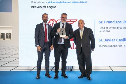 Francisco Javier Zubicoa, Head of Diversity & Inclusion & Labor Relations, y Roberto González, técnico superior de PRL, han recibido el galardón de manos de José Luis Martínez Olivares, vicepresidente de Asepeyo, en el acto de entrega de estos Premios, celebrado hoy en el Museu Marítim de Barcelona.