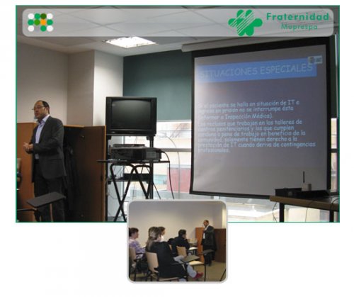 >La jornada conto con la colaboracion, por parte de Fraternidad Muprespa, con el Dr. Jaime Pueyo Otal, medico especialista en valoracion del dano corporal. Por parte de Fremap asistio el Dr. Manuel Albala, especialista en medicina del trabajo.