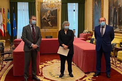 En el acto de la firma participaron la alcaldesa de Gijón, Ana González Rodríguez, el director provincial de la Tesorería General de la seguridad Social en Asturias, Vicente Paredes, y el director territorial de Ibermutua asturiana, Valentín Sanz.