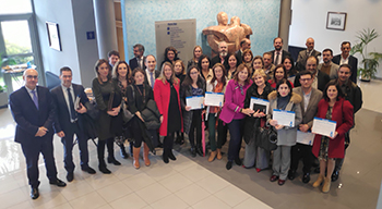 La entrega de los diplomas se ha llevado a cabo en el transcurso de un acto celebrado hoy en la sede de la Mutua en A Coruña, que fue presentado por Javier Flórez Arias, director de Ibermutua Gallega, y que contó con la presencia de Adela Quinzá-Torroja García, xerente do Instituto de Seguridade e Saúde Laboral de Galicia (ISSGA) de la Xunta de Galicia.