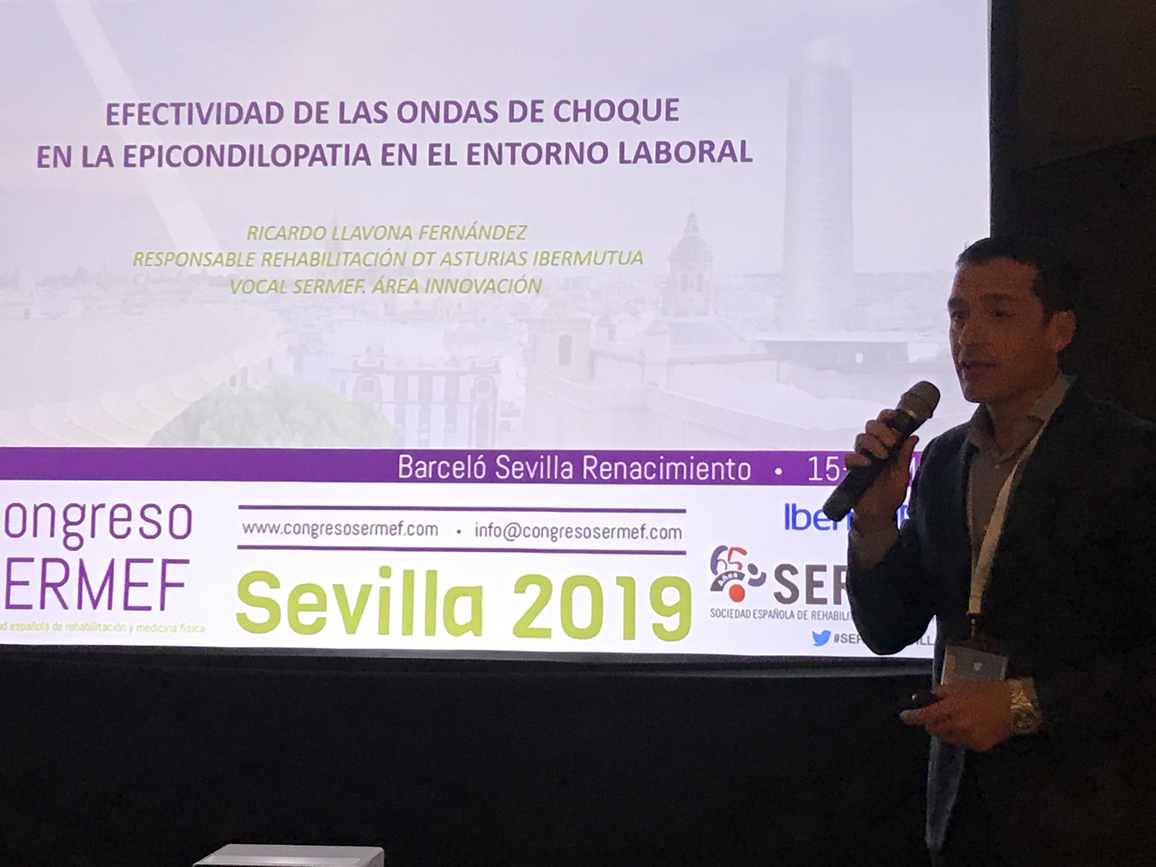 Médicos del Servicio de Rehabilitación de Ibermutua han presentado sendas ponencias sobre la efectividad de la aplicación de ondas de choque para el tratamiento de la epicondilitis (el denominado ‘codo del tenista’) y las roturas musculares durante la celebración del Congreso Nacional de la Sociedad Española de Medicina Física y de Rehabilitación (SERMEF), celebrado en Sevilla del 15 al 18 de mayo del 2019, con la asistencia de más de 800 especialistas de España, Portugal y Latinoamérica.