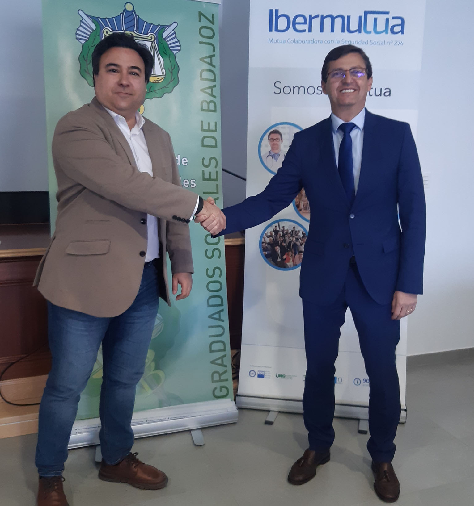 (Badajoz, 15 de febrero de 2022). Ibermutua, Mutua colaboradora con la Seguridad Social, y el Colegio Oficial de Graduados Sociales de Badajoz han firmado un convenio de colaboración cuyo objetivo es el de facilitar la divulgación adecuada de las novedades normativas en materia de Seguridad Social, con especial dedicación a las prestaciones responsabilidad de la Mutua, a través de distintos canales de comunicación.