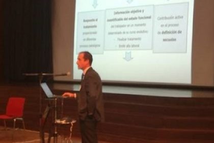 El doctor Miguel Angel Lorenzo Agudo, jefe del Departamento de Biomecánica y subdirector médico de Contingencias Profesionales de Ibermutuamur explicó los avances logrados en la valoración funcional que viene realizando la Entidad a trabajadores en situación de Incapacidad Temporal.