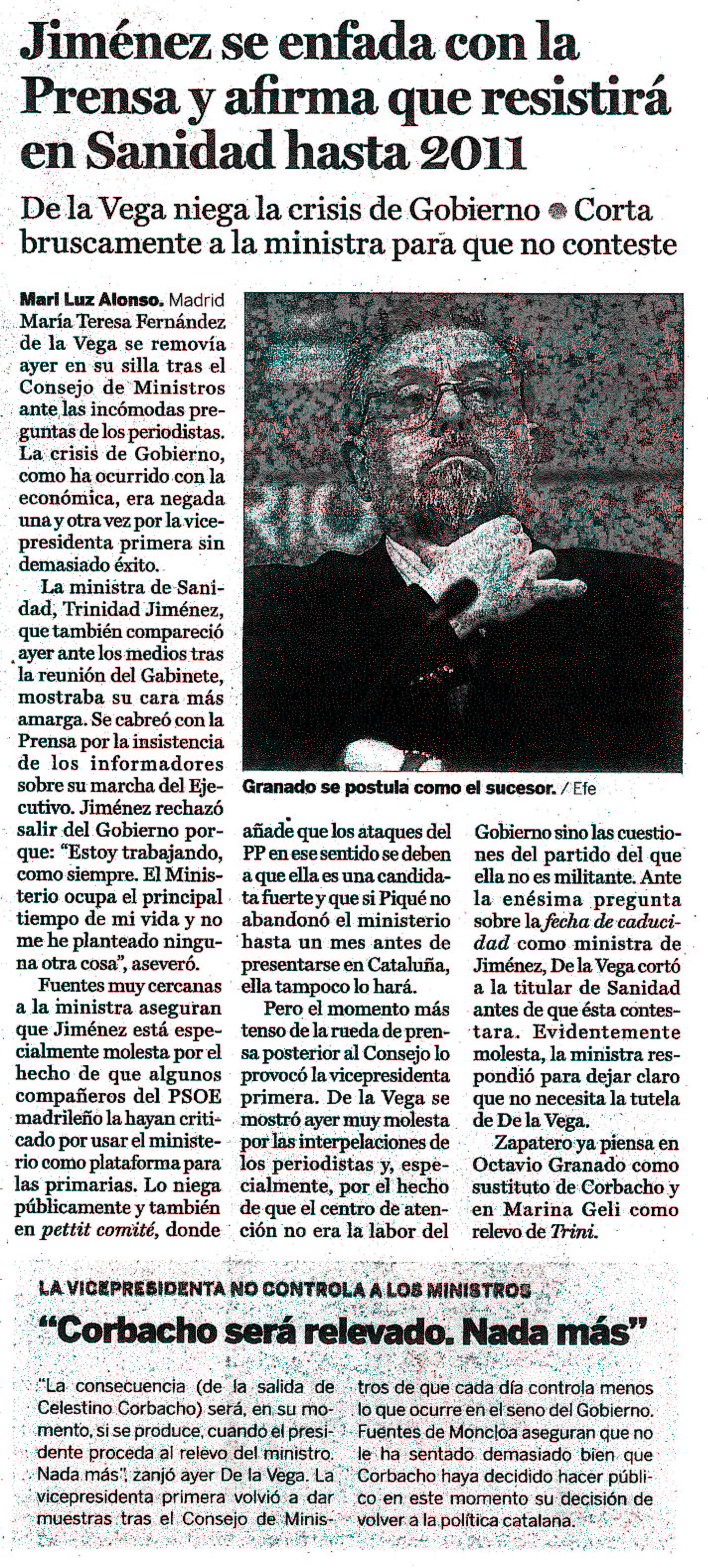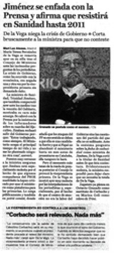 Jimenez se enfada con la Prensa y afirma que resistira en Sanidad hasta 2011.