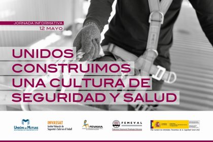 10 mayo 2022. Unión de Mutuas, en colaboración con el INVASSAT, la Federación empresarial metalúrgica valenciana, Femeval, y la Federación empresarial de la madera y el mueble, Fevama, ha organizado la jornada informativa “Unidos construimos una cultura de Seguridad y Salud”, que tendrá lugar el jueves 12 de mayo, en la sede de la mutua en Valencia Paterna Parc Tecnológic.