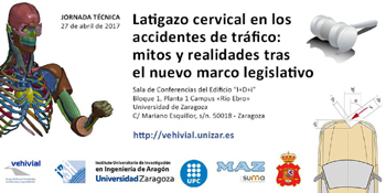 El pasado 27 de Abril en el campus Rio Ebro de Zaragoza, tuvo lugar una jornada tecnica sobre el Latigazo cervical en los accidentes de trafico: mitos y realidades tras el nuevo marco legislativo, donde MAZ estuvo presente. El evento conto, ademas, con la colaboracion del Grupo Vehivial, la Universidad de Zaragoza, la Universidad Politecnica de Cataluna y el Consejo General del Poder Judicial.
