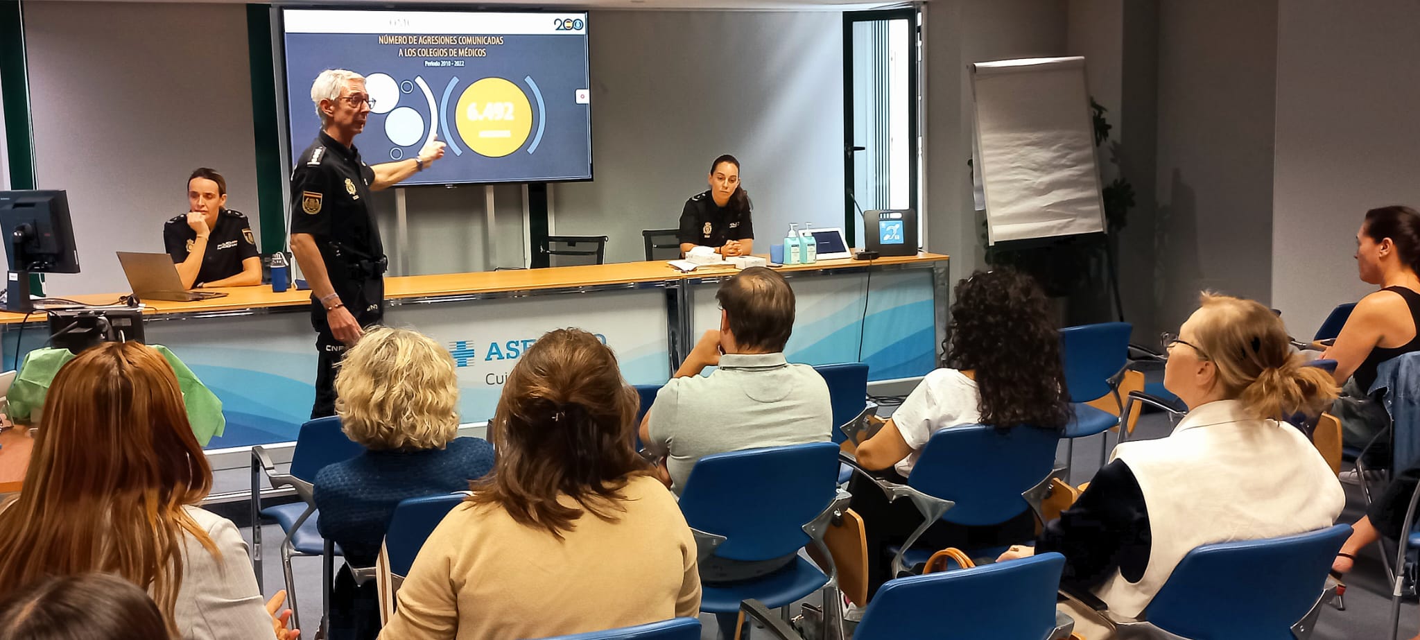 Para estas sesiones se ha contado con la colaboración del Equipo Nacional Interlocutor Policial Sanitario, dependiente de la Policía Nacional, y en ellas se han dado pautas e información para que los profesionales puedan hacer frente y prevenir las situaciones de violencia crecientes que se están generando en los centros de trabajo.