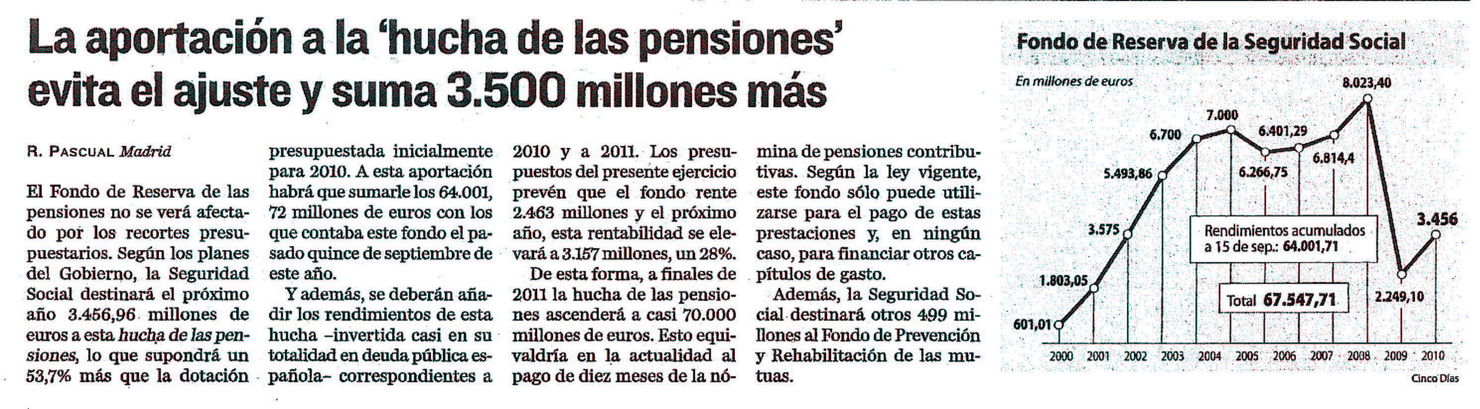 La aportacion a la -hucha de las pensiones- evita el ajuste y suma 3.500 millones mas.