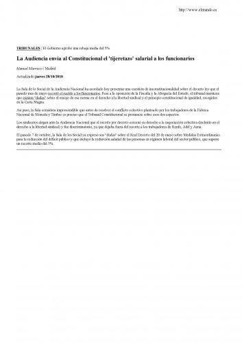 El pasado 7 de octubre, la Sala de los Social ya expresó sus "dudas" sobre el Real Decreto del 20 de mayo sobre Medidas Extraordinarias para la reducción del déficit público y que incluyó la reducción salarial de las personas en régimen laboral del sector público, que supone un recorte medio del 5%.