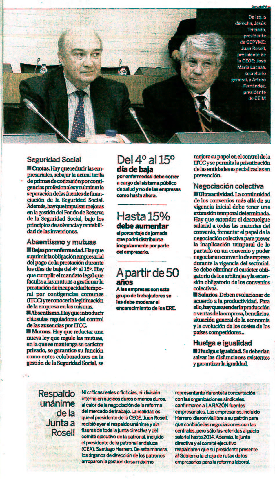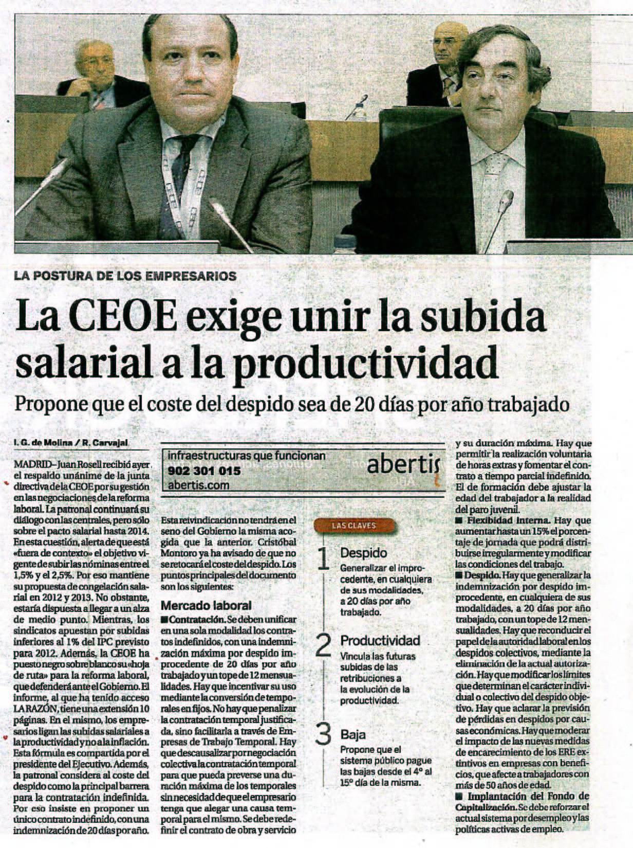 Propone que el coste del despido sea de 20 dias por ano trabajado.