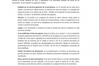 Informes: Se ha incluido en el programa una sección de nuevos informes, desde donde se pueden realizar consultas sobre el estado de la documentación, y hacer el seguimiento de los centros de trabajo, así como de los trabajadores que concurren en los mismos, por diferentes criterios y opciones de búsqueda.
