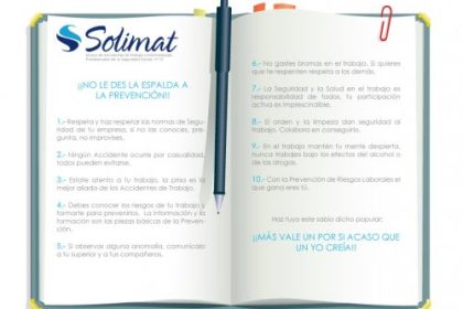 Solimat se suma, así, a la infinidad de acciones que se han realizado, en todo el mundo, para conmemorar el Día Mundial de la Salud y Seguridad en el Trabajo, buscando un único fin: la Prevención de Riesgos Laborales.