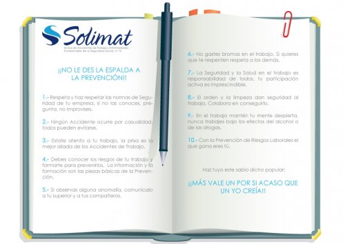 Solimat, se ha sumado a la conmemoración del Día Mundial de la Salud y Seguridad en el Trabajo, celebrado el pasado 28 de abril, con una acción hacia las empresas y asesorías laborales asociadas a su entidad.