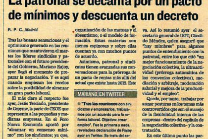 • La patronal se decanta por un pacto de minimos y descuenta un decreto.