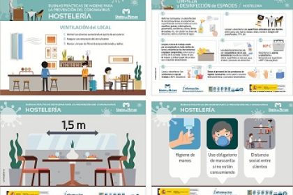 Con el objetivo de contribuir a la mejora de las condiciones de seguridad y salud en el sector de hostelería y que empresarios y trabajadores tengan una información clara, inteligible y actualizada, Unión de Mutuas ha publicado material informativo, con una batería de recomendaciones, en el que de forma muy visual recopila las buenas prácticas referidas a la higiene del personal, la desinfección y limpieza de los espacios, y la ventilación de los locales.